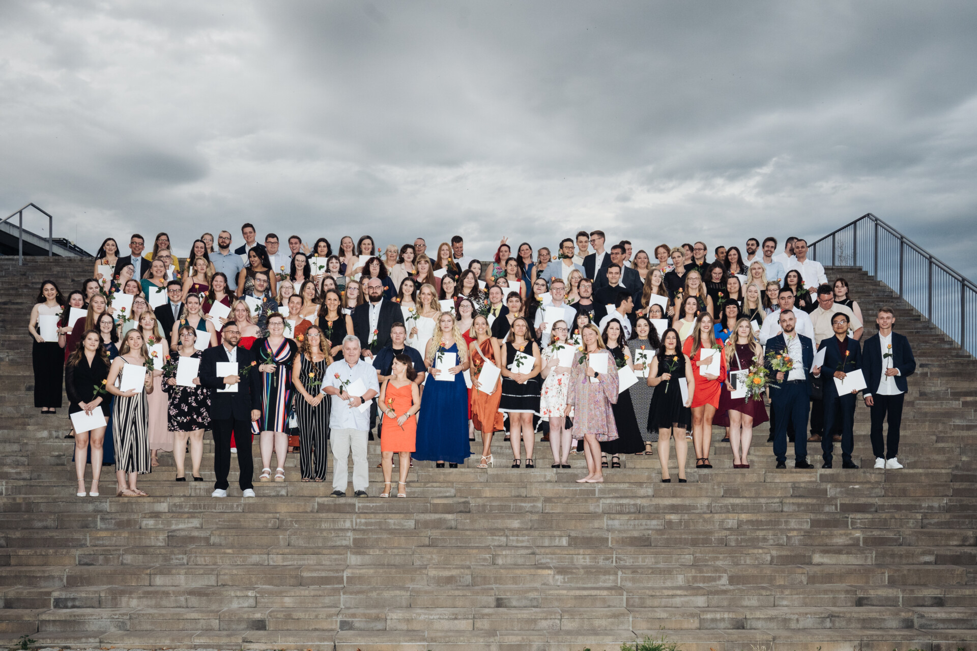 Für 171 Absolventen des Steuerfachangestellen-Berufes fand am 25. August 2023 die glanzvolle Festveranstaltung statt. Alle Gäste der diesjährigen Absolventenfeier erlebten die einmaligen Gänsehautmomente der Zeugnisübergabe und des Zusammenkommens der Absolventen auf der Freitreppe des Internationalen Congress Centers in Dresden. Glücksstrahlend und voller Stolz im festlichen Look blickte die jüngste Steuerfachangestellten-Generation in die Kameras der Fotografen und Fernsehteams.